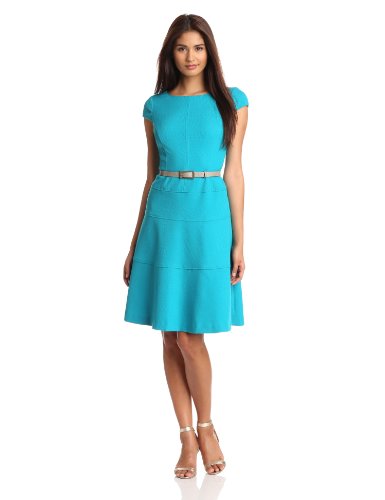 - A dainty belt creates a defined waist in this Anne Klein darling with cap sleeves, princess seams, and a classic A-line skirt.